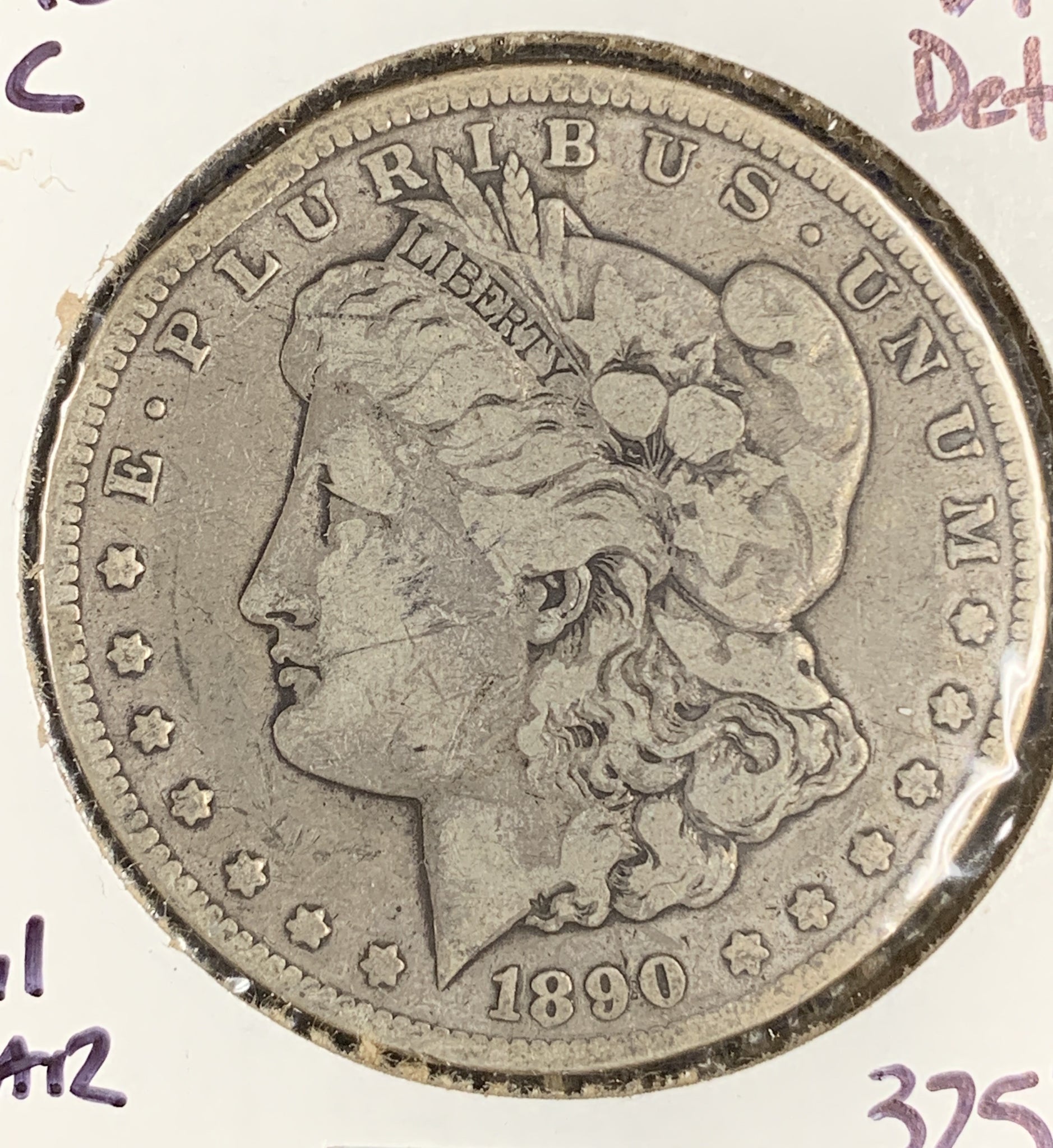 1890-CC Tail Bar Morgan Dollar, VF Det.