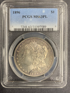 1896 Morgan Silver Dollar, MS63PL PCGS. Great Eye Appeal