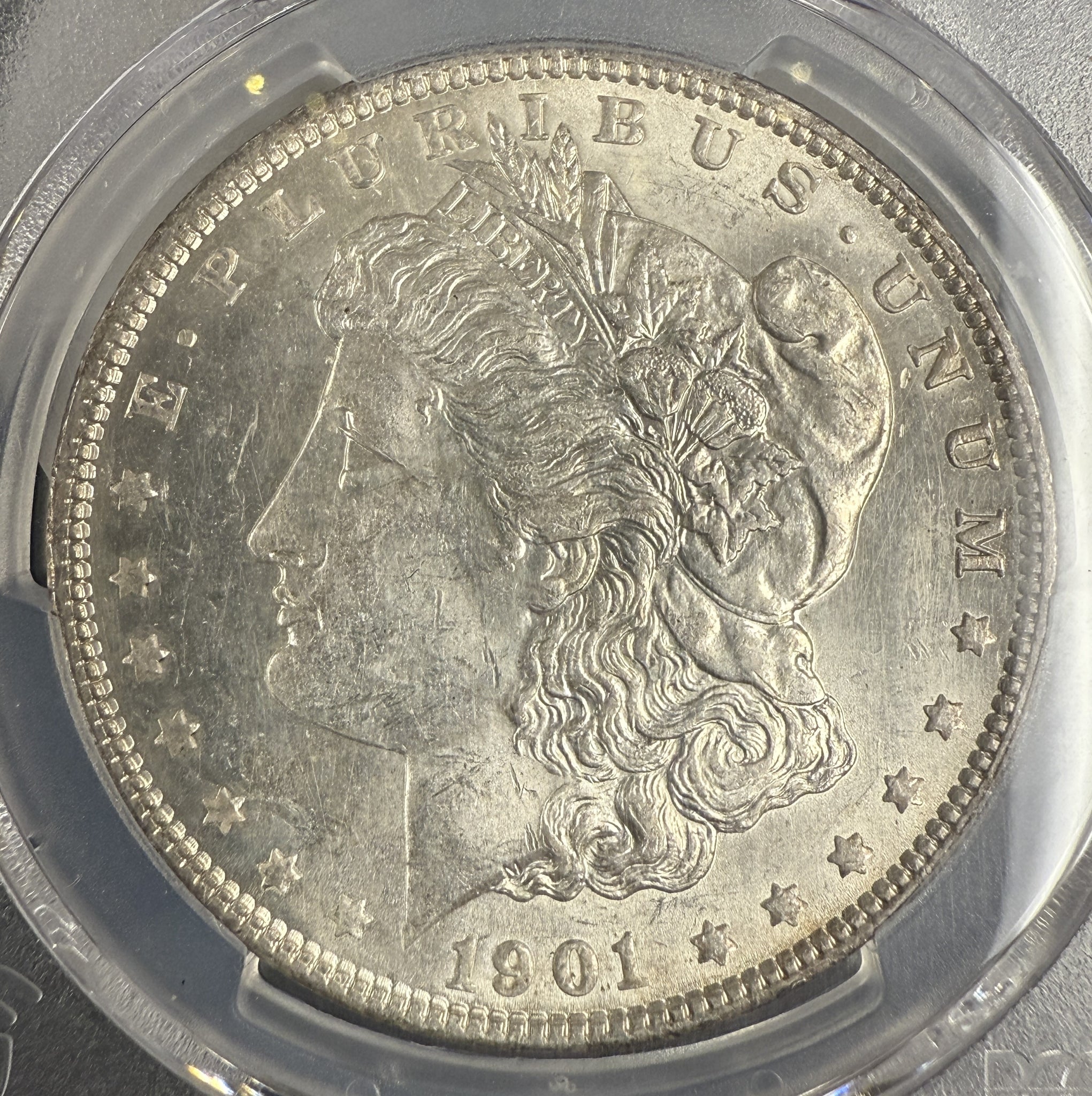 1901 Morgan Silver Dollar, AU58 PCGS Gold Shield (10438)
