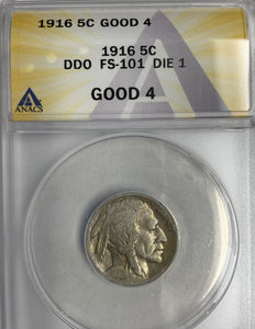 1916/16 DDO FS-101 Buffalo Nickel, G-4 ANACS