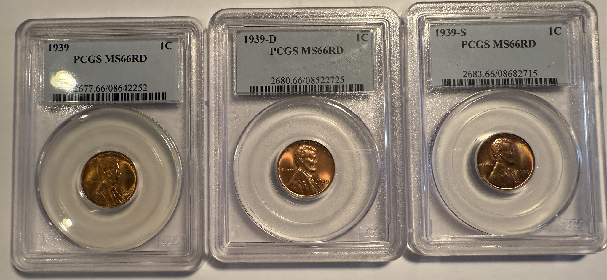 1939 P ,D ,S Lincoln Cents. MS66RD PCGS, (12664)