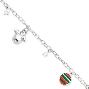 Sterling Silver Polished Enameled Christmas Themed Charm Bracelet